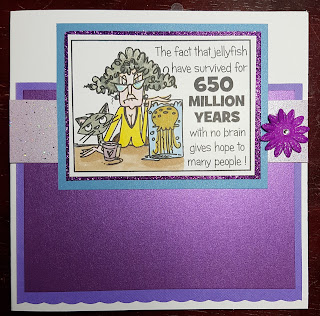 This card uses an image from Bugaboo She is coloured using my spectrum noir colourblend pencils and Spectrum noir sparkle pens The sentiment was printed in word The papers are all bits left over from the last card I made Apart from the black glitter card Inside the sentiment say: but you rolled over and squashed her and now look what happened! Happy Birthday This card is for the following challenges Mojo Monday - Sketch I have followed Through the Craft Room Door - Anything Goes Simon Say - Anything Goes Pennys Paper Crafty Challenge - Anything Goes Through The Purple Haze - Male Colours Thanks for Looking